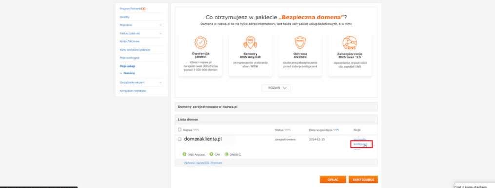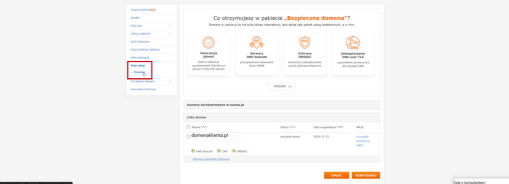 Log in to the customer panel at Nazwa.pl