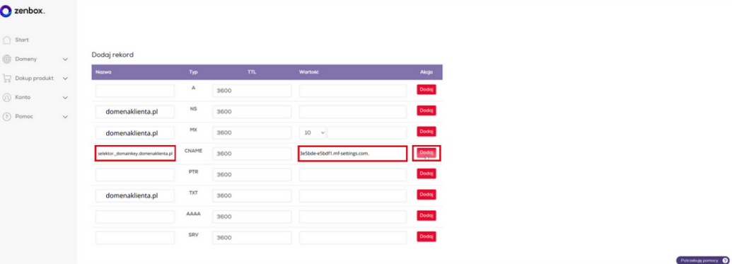4. Complete the required fields. In the "Name" field o : selector._domainkey.yourjadomena.pl