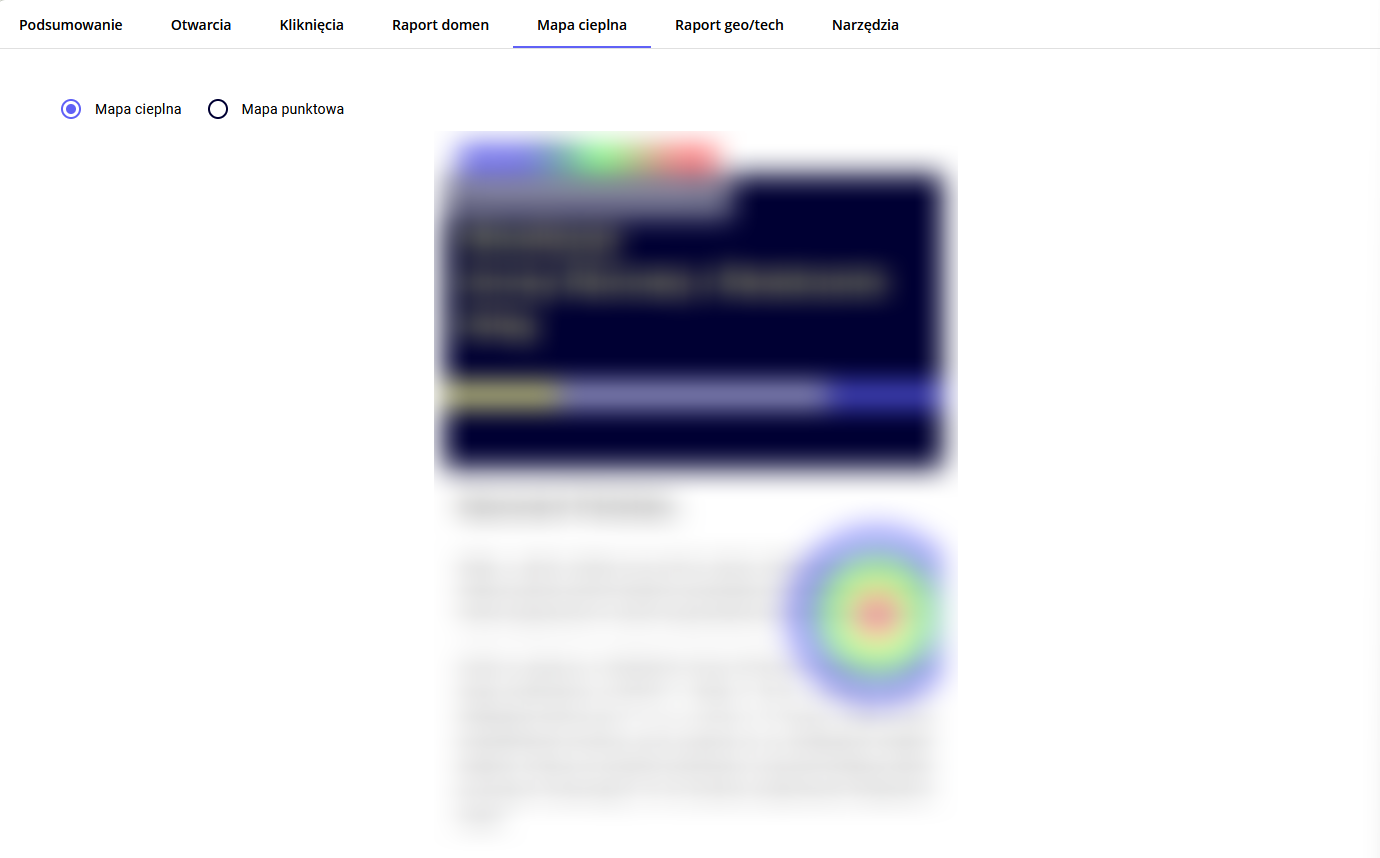 Mapa cieplna (Heatmap): Narzędzie do analizy wizualnej. Nałożymy na Twoją kreację kolorystyczną mapę cieplną oraz mapę punktową. Zobaczysz dokładnie, w które obszary i przyciski odbiorcy klikają najchętniej, co ułatwi Ci optymalizację układu (UX) w przyszłości.